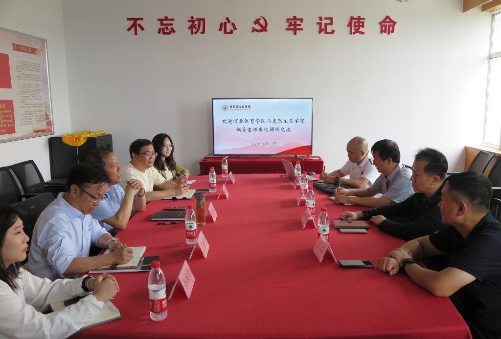2024年6月13日,河北体育学院91亚洲精品日日夜夜院长周德胜一行5人来我校调研交流。91亚洲精品日日夜夜党委书记、副院长、教学部主任等参加了此次活动。