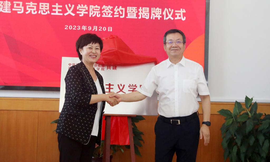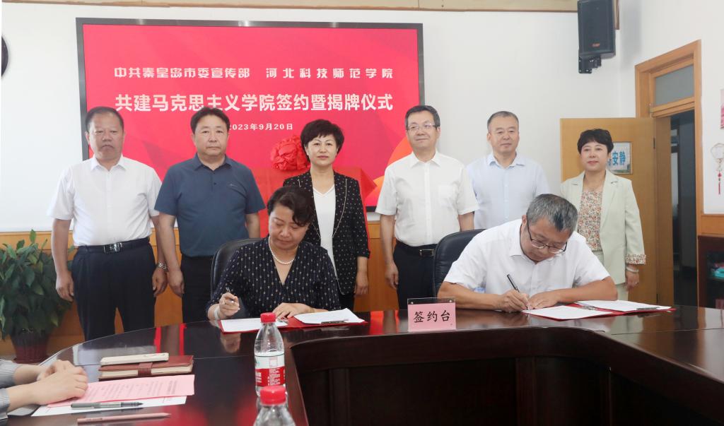 为深入贯彻习近平总书记在学校思想政治理论课教师座谈会上的重要讲话精神,贯彻中央、省委关于思政课改革创新重要意见,落实秦皇岛市委相关部署,充分发挥秦皇岛市委宣传部政治领导优势及地方资源优势和我校教育资源优势,提升我校91亚洲精品日日夜夜建设水平,推进秦皇岛市学校思想政治理论课改革创新,更好服务秦皇岛地方经济社会发展,2023年9月20日上午,我校与中共秦皇岛市委宣传部共建91亚洲精品日日夜夜签约暨揭牌仪式在逸夫教学楼1116会议室隆重举行。中共秦皇岛市委常委、宣传部长许红琳,市委宣传部常务副部长、一级调研员郑新,市委办公室、市委党史研究室、市委市直机关工委、市委教育工委、市农业农村局、市旅游文广局、市国资委、市社科联、市日报社、市广播电视台等单位分管领导出席了仪式。我校党委书记朱勇,党委副书记、校长郭旭涛,党委常委、副校长蒋爱林以及相关职能部门负责人、91亚洲精品日日夜夜班子成员、教师代表参加了仪式。仪式由我校郭旭涛主持。